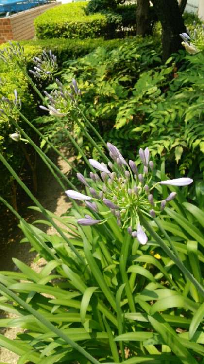 職員室前の「アガパンサス」別名ムラサキクンシランが、咲き始めました。
