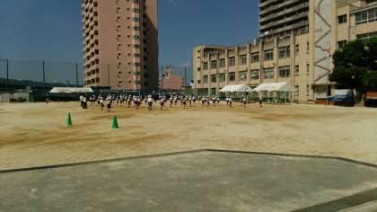 運動場には朝からテントをたてました。テントを張ると、運動会間近という雰囲気になります。