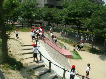 1年生が生活科の学習で金塚ふれあい西公園へいきました。約束をきちんと守って遊具で遊んだり、春の草花を観察したりすることができました。