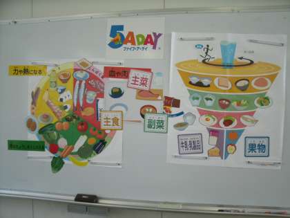 「5・a・day(ファイブ・ア・デー)」とは、「1日に5種(主食、主菜、副菜、牛乳・乳製品、果物)の食べ物をバランスよく食べましょう」ということだそうです。近隣のスーパーのご協力を得て、5年生が買い物ゲーム・レジチェックアウト作業体験・食事栄養バランス学習・サラダ作り実習と盛りだくさんの体験学習に取り組みました。ご協力いただきました皆様、本当にありがとうございました。