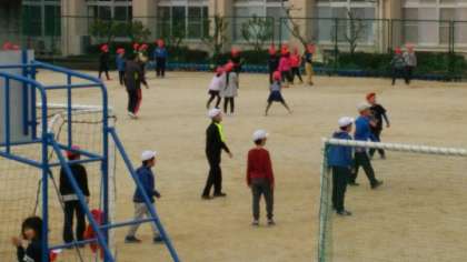 昼休みの運動場には、友だちと楽しそうに遊ぶ児童の姿が見られました。