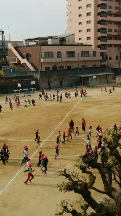 準備体操の後、ゆっくりとしたペースで走ります。身体が慣れてきたら自分のペースで走っています。