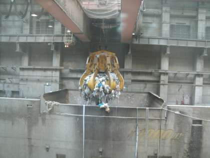 1回で6トンのごみをつかみ、焼却炉へいれる機械やパッカー車がごみを運んでくる様子等を見学しました。