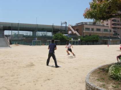 スポーツテストが始まりました。6年生の50m走とソフトボール投げの様子です。