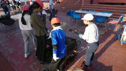 野外炊さんの様子です。おいしいカレーはできたでしょうか?自分たちで作ったカレーは、きっとおいしかったことでしょう。