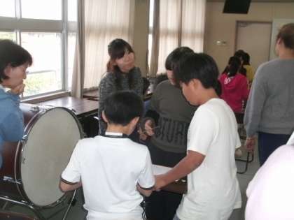 阿倍野区音楽科主任会の研究授業がありました。「音楽の仕組みと楽器の特性を生かして、リズムアンサンブルを作ろう。」というめあてで学習活動に取り組みました。