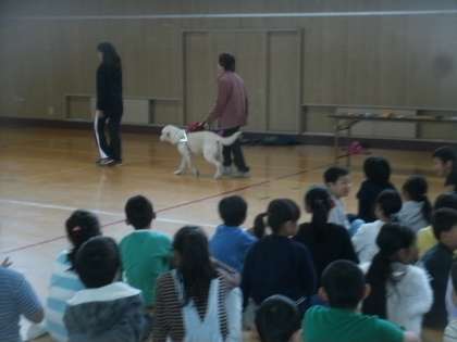 昨日、3年生が山本美恵子さんに来ていただき、視覚障がいについての学習をしました。盲導犬のフェリシアも一緒にきてくれました。よく訓練された盲導犬の行動に子ども達は驚いていたようです。山本さんはまだまだ盲導犬に対する理解不足が多くあり、お店に入れてもらえなかったりすることもあるといっておられました。金塚小学校に学んでいる子ども達が成人する頃には、今以上に障がいに対する理解が進み、障がいのある方も共生していける成熟した日本社会になっていることを願います。