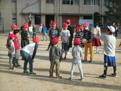 木曜日は児童集会の日です。今日は「スポーツの秋を楽しもう集会」ということで「キヤッチゲーム」を楽しみました。わくわくグループで輪になって、1分間の間にどれだけ多く投げてキャッチできるかを競いました。高学年は低学年がキャッチできるように優しく投げてくれていました。