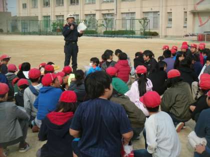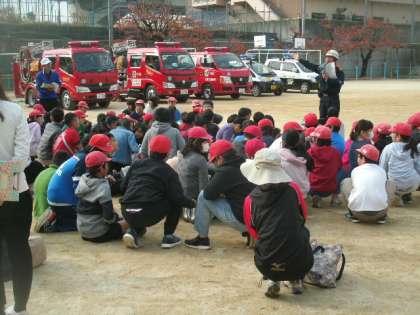 阿倍野消防署の署員の方から、火事・地震の際に自分の命を守るために大切なことを話していただきました。