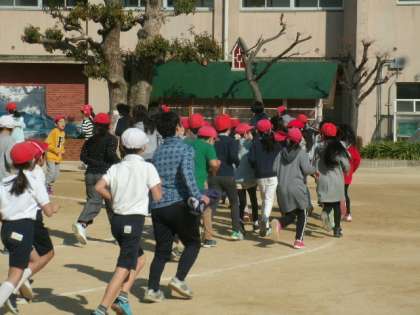 今週は冬の寒さに負けない強い身体と辛抱強く頑張る強い心を育てるために「かけ足会」を実施しています。15分休みに全校児童が運動場に出て、準備体操の後、1分間は学級で揃ってゆっくりペースで走ります。その後、5分間は自分のペースで頑張ります。自分のペースですから、子ども達は無理のないスピードで走っています。私も負けないように子ども達と一緒に走っているのですが、子ども達の速さについていけず、悲しいくらい追い抜かされていきます。