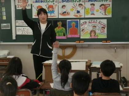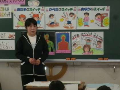 2年生で本校の鈴木栄養教諭による食育(食に関する指導)の授業がありました。皆さんも「食育」という言葉は聞いたことがあると思います。スナック菓子を食べたり、清涼飲料水を飲む機会が多い。朝ごはんを食べないで登校する。夜遅くまでゲームをしていて、朝に起きれない。ずっと睡眠不足で午前中からあくびばかりしている。これらは今の子ども達の姿だと言われています。金塚小学校の子ども達の中にも当てはまる子どもは少なくありません。そこで「早寝・早起き・朝ごはん」ということになります。成長期の子ども達にとって、どれも欠かすことのできない大切なことです。2年生は10時間程度の睡眠時間が必要だと言われています。「寝る子は育つ」寝ている間に成長ホルモンが多く出るそうです。しっかりと食べることも大切です。子ども達に食べることの大切さを知ってもらうのが「食育」です。朝ごはんを食べないと、授業を受けていても脳がエネルギー不足で活性化してくれません。学校で学び、運動するためにも朝ごはんはとても大切です。子ども達が学校でしっかり学べるようにご協力いただければと思います。