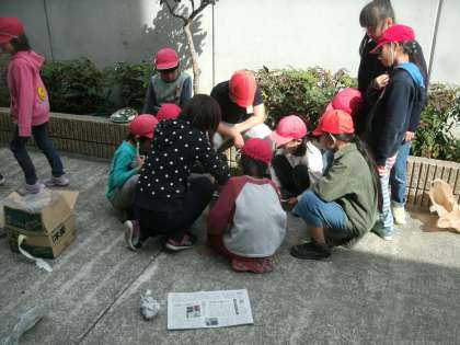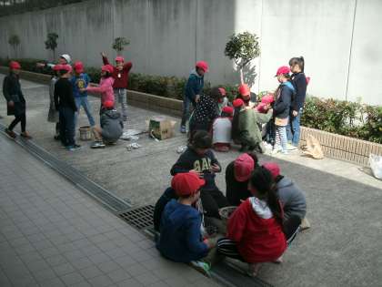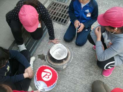 3年生が社会科の学習で「昔の人のくらし」を知るために、「七輪」を体験していました。私が子どもの頃はまだ家の前で七輪(私は「かんてき」と呼んでいました。)を使って煙の出るサンマなどを焼いていました。子ども達は炭が思うようにいこらず悪戦苦闘。ここは昔の人である私の出番とお手伝いさせて頂きました。