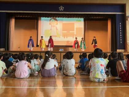 校長先生の話の後、夏休みの安全な生活について、金塚レンジャー達が確認と約束をしてくれました。