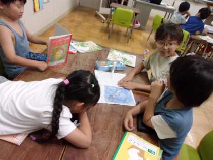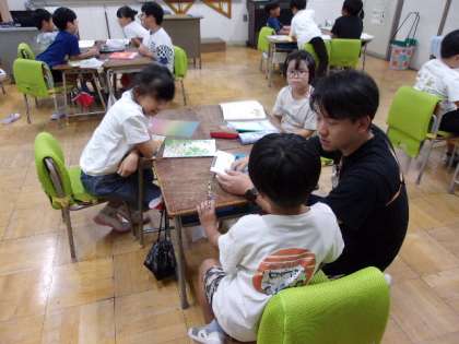 「夏休みに楽しかったこと」などをテーマに話し合いました。子どもたちは、「海に行ったよ!」など、思い出いっぱいの出来事を嬉しそうに話していました。聞いている子も、「それ、いいね!」「どんな海だったの?」と、自然にあいづちや質問を交えながら、会話を楽しんでいました。