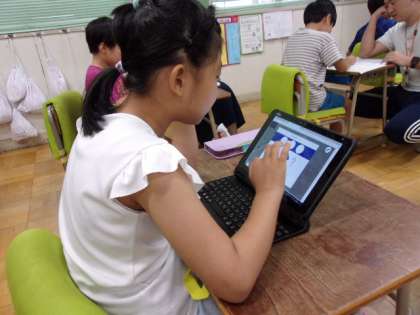 子どもたちは、画面に表示される漢字を指でなぞったり、クイズ形式で答えたりと、楽しみながら学習に取り組んでいます。
