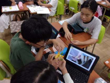 5年生は理科の授業で、「ヘチマ」と「アブラナ」の花の共通点と相違点について考える学習を行いました。まずは学習園に出かけ、実際の植物を観察するところからスタート。子どもたちは、花の形や色、咲き方などをじっくりと見て、気づいたことをメモにまとめていきました。