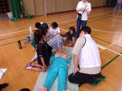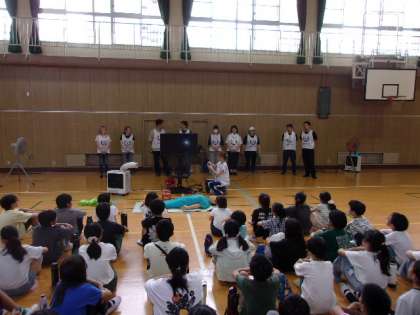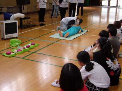 9月4日 5・6年 応急手当教育 公開日 2025/09/05 更新日 2025/09/05 お知らせ 4日午後、5.6年生が救急救命について学びました。 大阪災害ボランティアの方々から詳しい説明を受け、一人ひとりが心肺蘇生法を体験しました。 この学習は毎年実施しているもので、6年生にとっては2回目になります。万一のことが起こった場合や災害に備えることの大切さを、改めて学んでもらいました。 いいね(0)