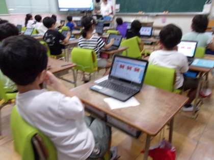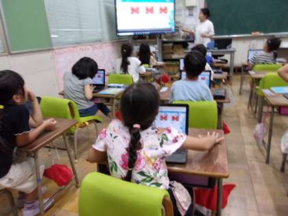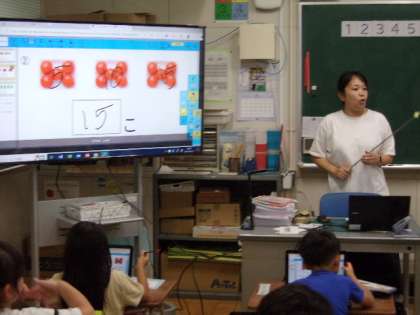 1年生は算数の授業で、数の数え方について学習しました。今回は、リンゴが5個ずつ集まっている様子を見ながら、「5、10、15…」と5とびで数える練習をしました。実際に絵や実物を見ながら数えることで、数のまとまりを意識しながら楽しく学ぶことができました。