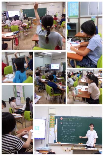 子どもたちは、「のびた長さ」だけでなく、「もとの長さとの比べ方」に注目し、割合を使って考えました。「同じ20cmでも、もとの長さが短い方がよくのびている」と気づいたときには、「なるほど!」という声があがりました。