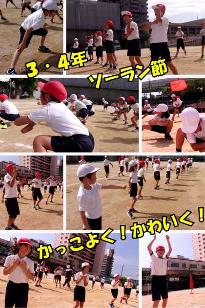運動会本番が近づき、3・4年生の団体演技「ソーラン節」の練習もいよいよ仕上げの段階に入りました。子どもたちは、全体の動きの細かい部分まで意識しながら、力強く、そして繊細に演技の完成度を高めています。