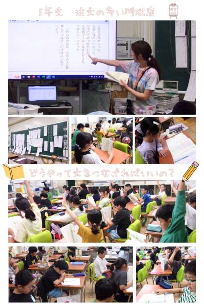 5年生の国語では、宮沢賢治の作品「注文の多い料理店」を題材に、「筆者の伝えたかったことは何だろう」というテーマで学習を進めています。子どもたちは、自分の考えをしっかり持ち、黒板に意見カードを貼り出しました。