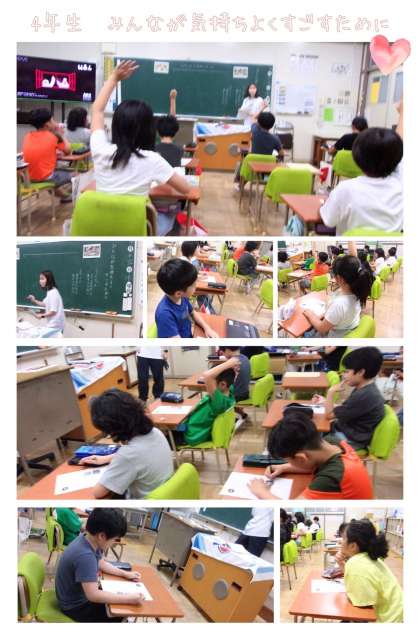4年生の道徳では、「みんなが気持ちよくすごすために」というテーマで学習を進めました。授業では、周りをイライラさせてしまうような行動をしてしまう人は、なぜその行動をとってしまうのかを考えました。