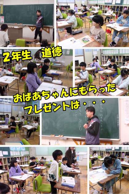 2年生は道徳の授業で「おばあちゃん元気ですか?」というお話を学習しました。大好きなおばあちゃんに会えると思っていたのに、体調を崩してしまい、届いたのはプレゼントだけ…。子どもたちは、会えなくて残念な気持ちと、おばあちゃんが自分を思って贈ってくれたプレゼントの温かさ、その両方をじんわりと感じ取っていました。今回の学習を通して、家族を思いやる心や、相手の気持ちを考えることの大切さを改めて感じることができました。