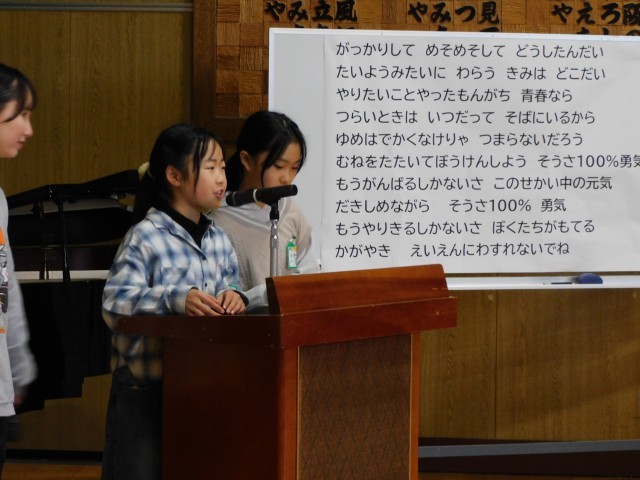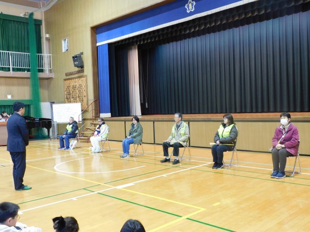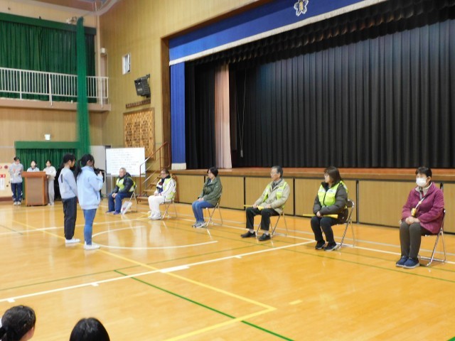 会のはじめには、児童代表から「いつも安心して学校に通えるのは、見守ってくださる皆さんのおかげです」と温かい言葉が送られ、見守り隊の方々も真剣に耳を傾けてくださいました。子どもたちの素直なありがとうの気持ちが体育館いっぱいに広がりました。