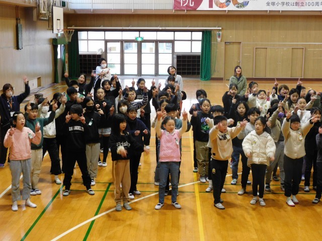 会の最後には、全校児童から心をこめて『勇気100%』の歌とダンスをプレゼントしました。息のそろった振り付けと元気いっぱいの歌声に、見守り隊の皆さんは笑顔で手拍子をして楽しんでおられました。
