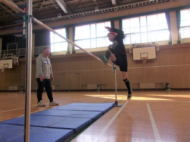 跳ぶときには、足がしっかり伸びるように意識することがポイントです。踏み切りの瞬間に体を大きく使えるよう意識することで、高さが出ることに気づいた子も多く、「さっきより高く跳べた!」「足を伸ばすとバーに当たりにくい!」と嬉しそうな声が上がっていました。