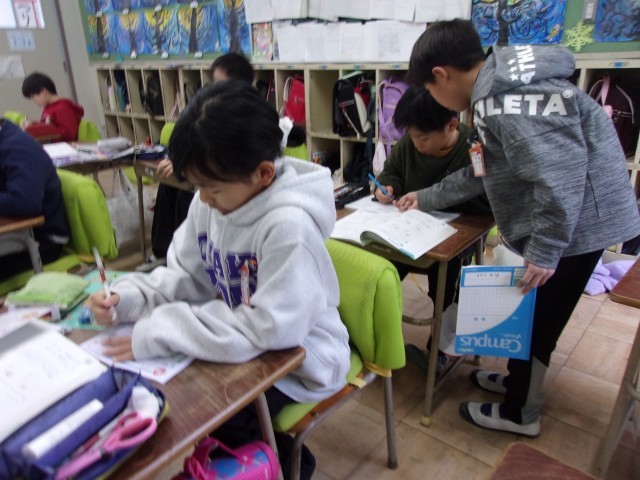 練習問題に取り組む時間になると、子どもたちは真剣そのもの。「できた!」「もう1問やってみよう!」と意欲いっぱいで、最後まで集中して計算を続ける姿が見られました。途中で間違いに気づき、ノートを見直して修正するなど、丁寧に取り組む子も多く、大きな成長を感じられる時間となりました。