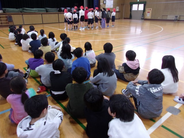 今朝の児童集会では、3月4日(水)に行われる「卒業を祝う会」に向けて、全校児童でリハーサルを行いました。本番は6年生にとって特別な一日となるため、6年生は本番までのお楽しみとして、今日のリハーサルには参加していません。 下級生だけで練習を進めましたが、それぞれの学年が心をこめて6年生のための出し物を準備しています。
