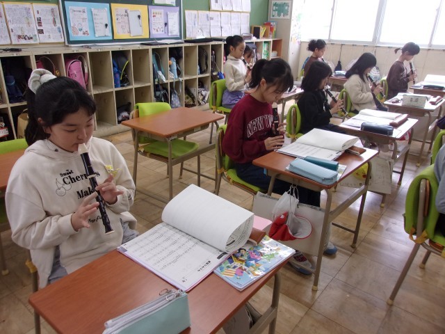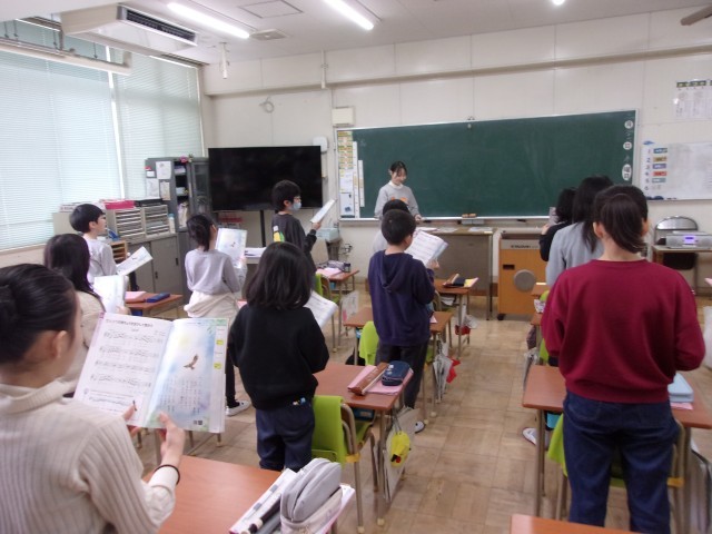 学級の中には、友達同士で聞き合いながら「今の響ききれいだったね!」とほめ合う姿も見られ、音楽を通して豊かな表現力を育む時間となりました。