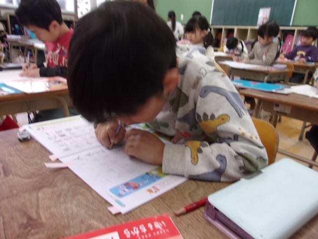 「はね」「とめ」「はらい」を意識し、ゆっくりと取り組む中で、「きれいに書けた!」と嬉しそうな声も聞こえてきました。1年生のこれまでの学習の積み重ねが感じられる、がんばりいっぱいの時間となりました。