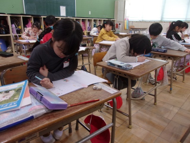 1年生は書写の学習で、これまでに習った漢字や文章を丁寧に書くことに挑戦しました。姿勢や鉛筆の持ち方に気をつけながら、一画一画を大切に書こうとする姿が見られました。