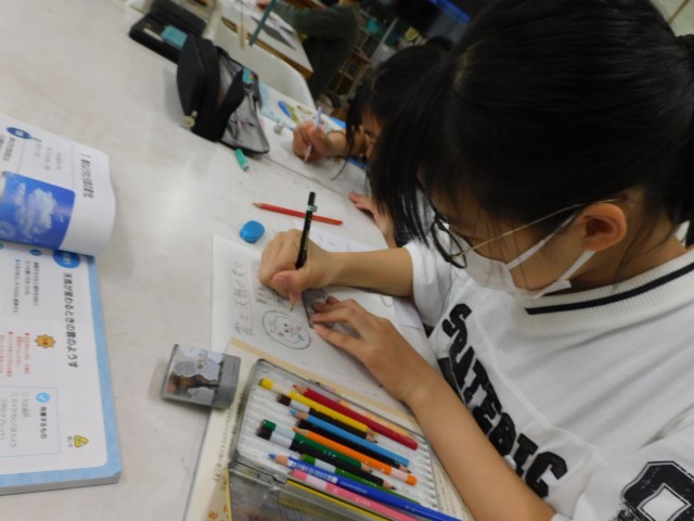 5年生の理科では、単元の始まりにオリジナルキャラクターを作る活動を行っています。このキャラクターは、ノートの中で登場し、自分が学習した内容を解説したり、大切なポイントをまとめたりする役割を担います。