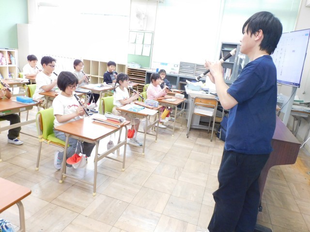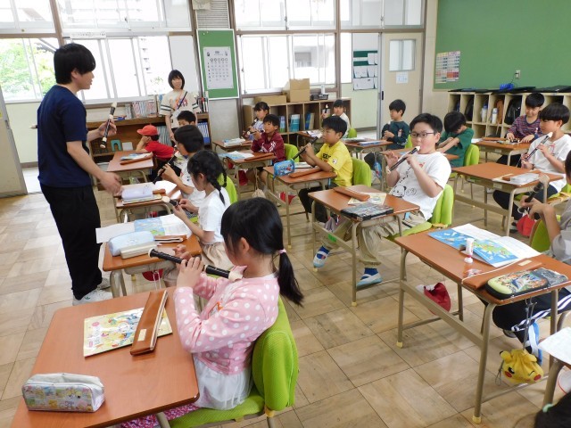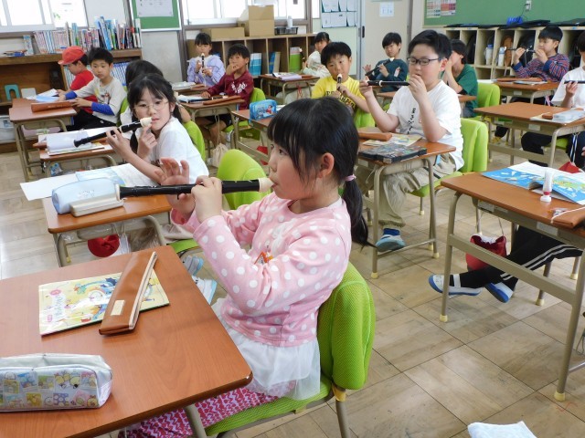 穴をきちんと押さえられると、リコーダーからきれいに響く音が出ますが、少しでも指が浮いてしまうと澄んだ音になりません。子どもたちはその違いに気づき、何度も繰り返し練習しながら、指の置き方や息の入れ方を工夫していました。少しずつ上手な音が出るようになり、「今のきれいだったよ!」と先生に声をかけられて喜ぶ姿も見られました。
