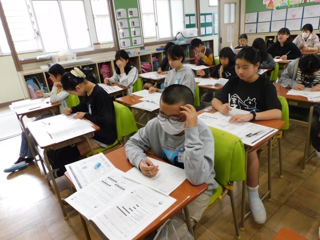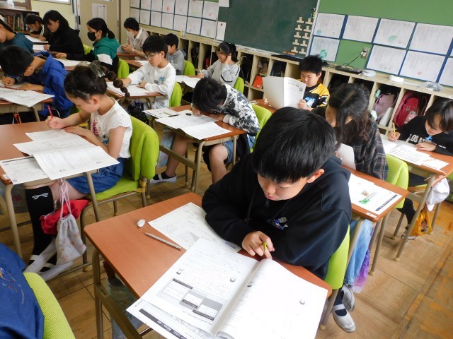 6年生は、理科とわくわく問題に挑戦しました。これまでの学習で身につけてきた知識や考える力を生かし、問題文を丁寧に読みながら、一つ一つ真剣に解答していました。考えを深めながら粘り強く取り組む姿から、最高学年としての成長が感じられました。