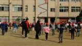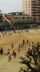 今日から平常授業です。 給食も始まりました。 昼休みの運動場には、友だちと...