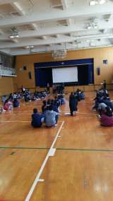 木曜日の朝は児童集会です。 今日は「じゃんけん列車」です。 音楽が止まれば...