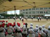 運動場で演技場所、隊形等を確認しながら練習に取り組んでいました。元気いっぱいの...