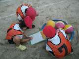 シュートゲームが始まりました。チームの仲間とパスをつないでいきます。そして、的...