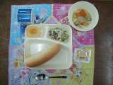 (今日の献立) スープ煮 ホウレンソウのグラタン 白桃(缶) コ...