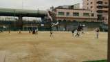 1年生が校庭でたこあげをしています。 今日は、風があまりなかったので、走っ...