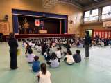 午後から講堂で修了式です。 校歌を手話で歌います。今日から5年生がひな壇で歌い...