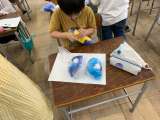 3年 図工 ふくろに花紙を詰めて何か楽しいものを作っていました。