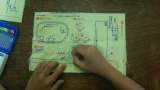 5年生が焼き板に絵を描いていました。自然体験学習の体験を新聞にもまとめていまし...