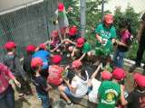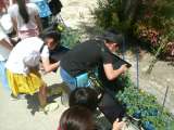 第2運動場の学習園に5年生がインゲンマメとオモチャカボチャを植えました。