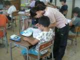 ひらがなのミニテストをしていました。先生の言ったことをよく聴いて、その言葉をひ...