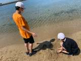 ときめきビーチで砂浜遊び。 クラゲを見つけたり、砂を掘ったり、フラッグフットボ...